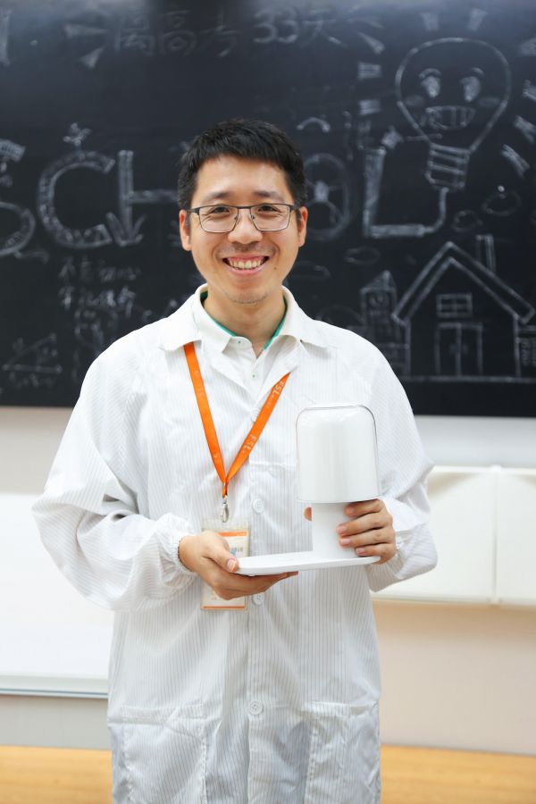 佛山中心研发中心主管拿着和天猫精灵共同研制的台灯,合作产品618销量增长了359%