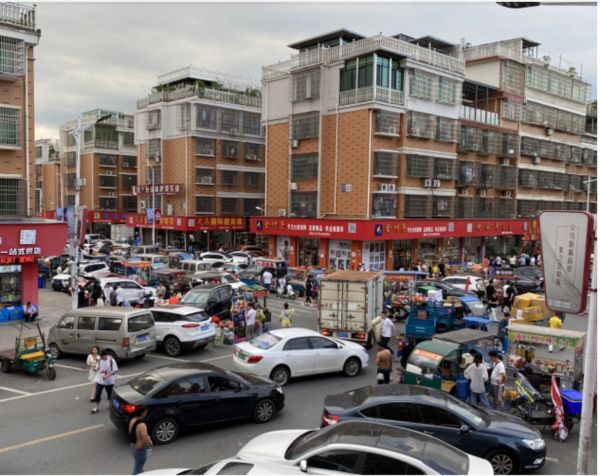 从出租屋窗外看过去,正是北下朱最繁忙的十字路口:提着黑色塑料袋打货的人们,穿梭在货车、三轮车和小轿车之间,熙熙攘攘。