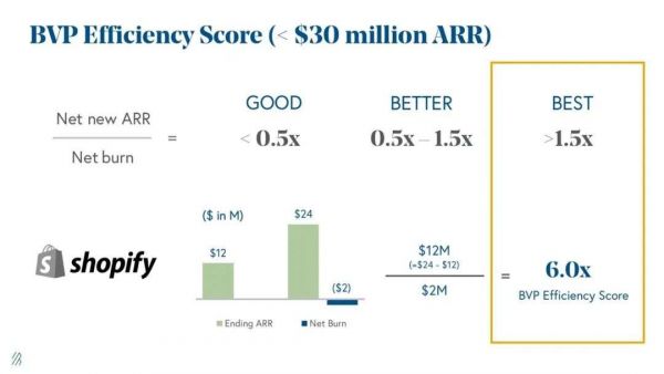 即一段时间内新增ARR与净支出的比值,仅对现金流还没有翻正的企业适用,这一指标与MRR增速不同,反映的是资金的利用效率,这一指标可以帮助我们看到增长背后的驱动力以及公司的花费习惯,MRR增长迅速固然重要,但是如果代价是大量支出,那么这种增长仍旧有问题。