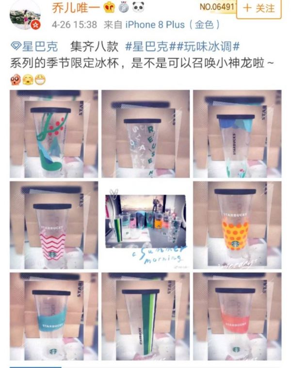 其实,空杯子虽然图案各异,但算不上精巧,图案也都安分地遵从了星巴克以往的设计风格。匠心之处在于,当这些杯子随机注入不同颜色的饮品搭配,就显得异常好看,有着不一样的搭配效果——