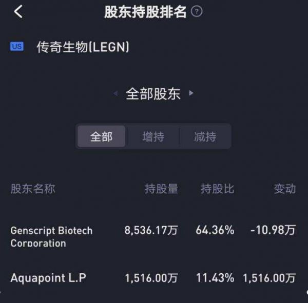 (图1:传奇生物股东名单)