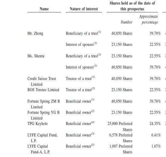 据招股书显示和GPLP犀牛财经查询,TPG和LYFE Capital济峰分别为其机构第一大股东和第二大股东,持股比例分别是24.35% 和7.48%。