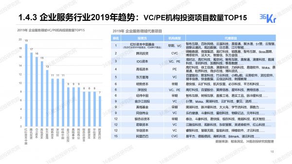 企业服务行业2019年趋势:VC/PE机构投资项目数量TOP15