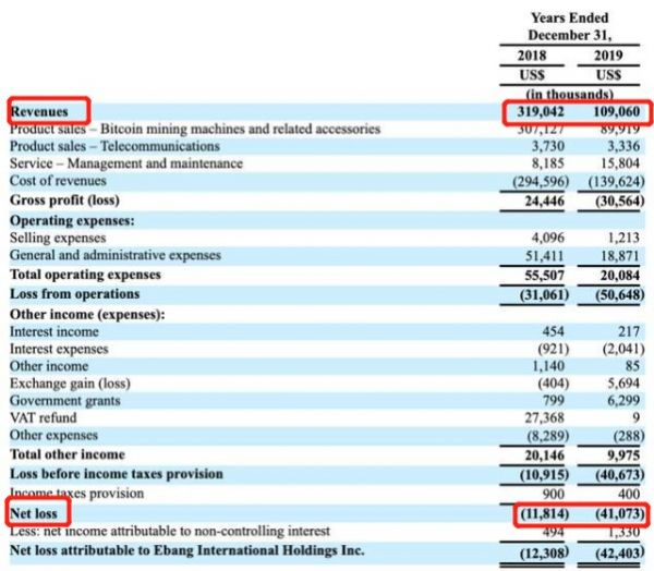 而从4月下旬提交的到纳斯达克的招股书中披露的业绩来看,亿邦国际2019年的总收入为1.091亿美元,净亏损为4110万美元;2018年总收入为3.190亿美元,净亏损为1180万美元。对比来看,2019年的业绩与2018年相比,缩水了近三倍,而净亏损却扩大了4倍。