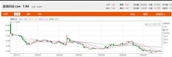 作为“区块链第一股”,业内也期待嘉楠能够在资本市场交出一份不一样的答卷,给区块链行业带来惊喜。但现实却是无比残酷,嘉楠的股价此后开始一路狂跌,中间虽有短暂反弹,但是仍挡不住下跌的大趋势。