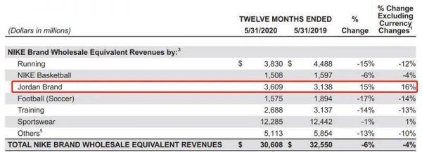 值得注意的是,在耐克各品类营收皆下滑的情况下,Jordan品牌却逆势走高,录得15%的营收增幅,占所有产品总营收的11.8%。目前Jordan品牌已经被CEO约翰·多纳霍(John Donahoe)列为巩固未来的增长五个具体因素之一,其他4个分别是品牌自身的力量、大中华区恢复疫情之前的增长态势、数字化转型和持续创新。