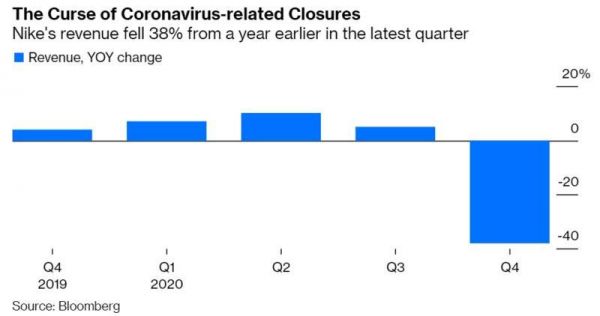 新冠疫情在全球范围内的大爆发,耐克在全球范围内90%的门店都被迫关闭,外界对其四季度的营收数据也不敢抱有丝毫乐观。但即便如此,现实依然远远惨过预期。