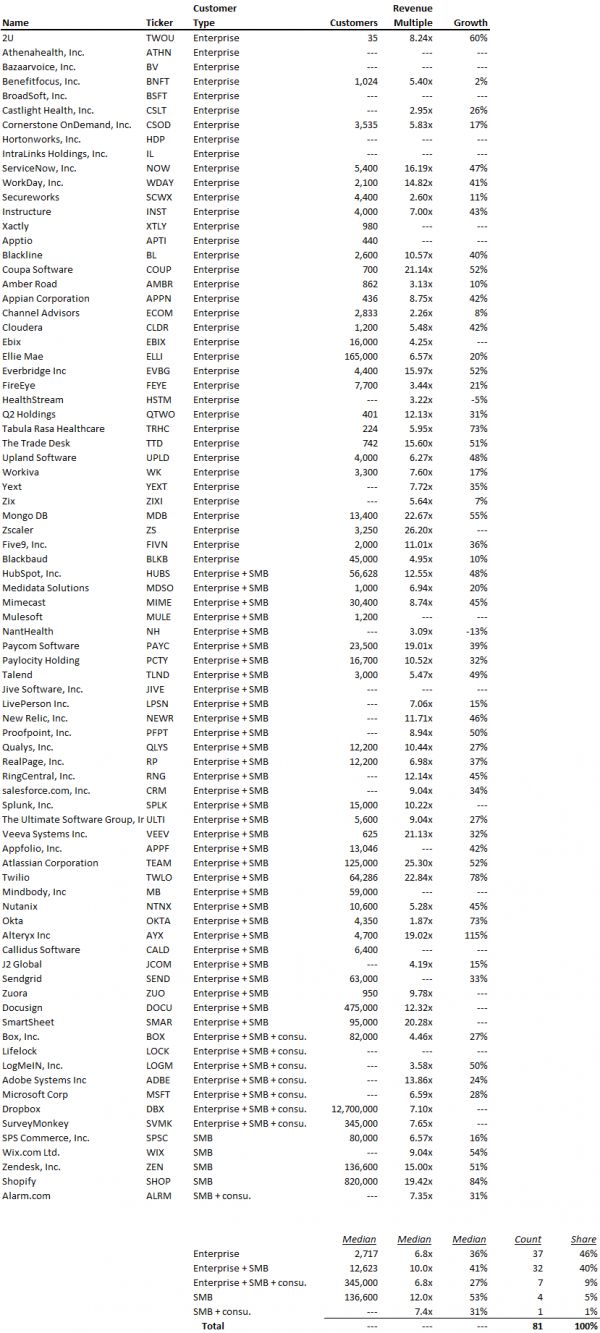 五、早期可以腰部客户切入,后期大客户为主要营收来源,单纯的SMB市场只在少数领域有成功可能性