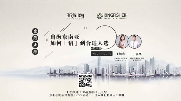6月29日,19:30—20:10,36氪出海将会举办第二期【出海止难|海外用工】分享,届时我们将邀请跨国猎头公司 KingFisher,来与大家一同分享在东南亚如何「猎」到合适人选,并对相关问题进行解答。