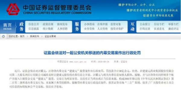 而36亿的天价罚单也是近年针对内幕交易开出的最大罚单。