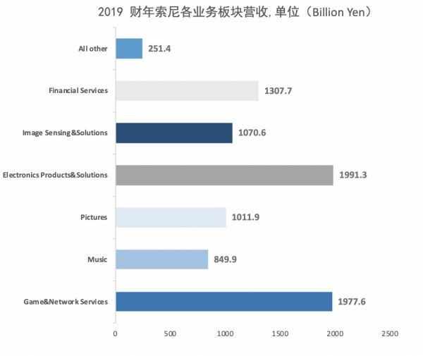 从财报来看,经过多轮整合,索尼是一个主要拥有六大业务板块的“全家桶”,分别是游戏和网络服务、音乐、影视、电子产品和解决方案、图像传感器和金融服务等。