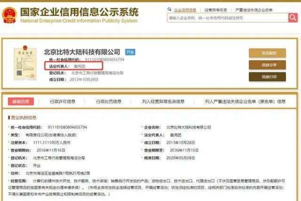 虽然詹克团营业执照被抢走,但在国家企业信用信息公示系统中,詹克团已是北京比特大陆法定代表人。