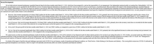 与此同时,亿邦国际的新招股书中公布了其2020年第一季度未经审计的财务报告。报告显示,截至2020年3月31日,亿邦国际第一季度营收为640万美元,同比增长6.1%;营收成本590万美元,同比下降3.9%。