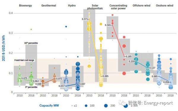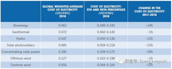 而据国际可再生能源署(IRENA)在2019年上半年发布的《2018年全球可再生能源成本报告》——