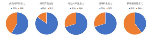 在光伏四大环节——多晶硅/硅片/电池片/组件领域,中国产业规模在全球产量占比分别达到58%、85%、70%、70%。