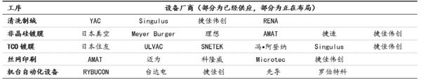 非晶硅镀膜、TCO镀膜环节以国外供应为主,国内厂商正在加速研发;