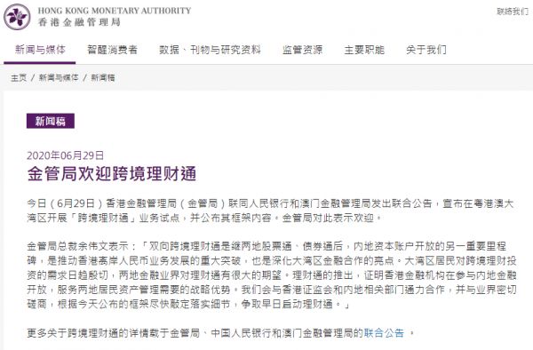 据悉,“跨境理财通”正式启动时间和实施细则将另行规定。