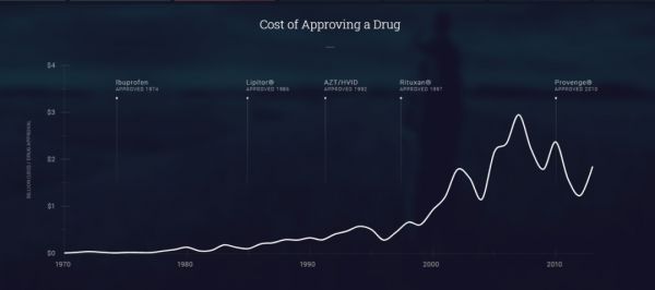 第二个问题是资本密集度。尽管有计算机建模的帮助,但在任何真正的迹象表明某种药物有可能在动物或人体试验中可以发挥出惊人的作用之前,公司就已经需要花费太多的时间和金钱。