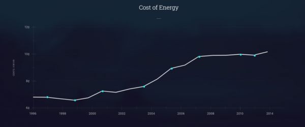 不幸的是,常规能源有极大的问题,还与政治和环境成本纠缠在一起,比如石油就受到非常大的地理限制。替代能源代表了巨大的机会,但是正如能源生产的成本正在持续上涨所表明的那样,我们在以更低的成本来生产更多能源的方面进展甚微。