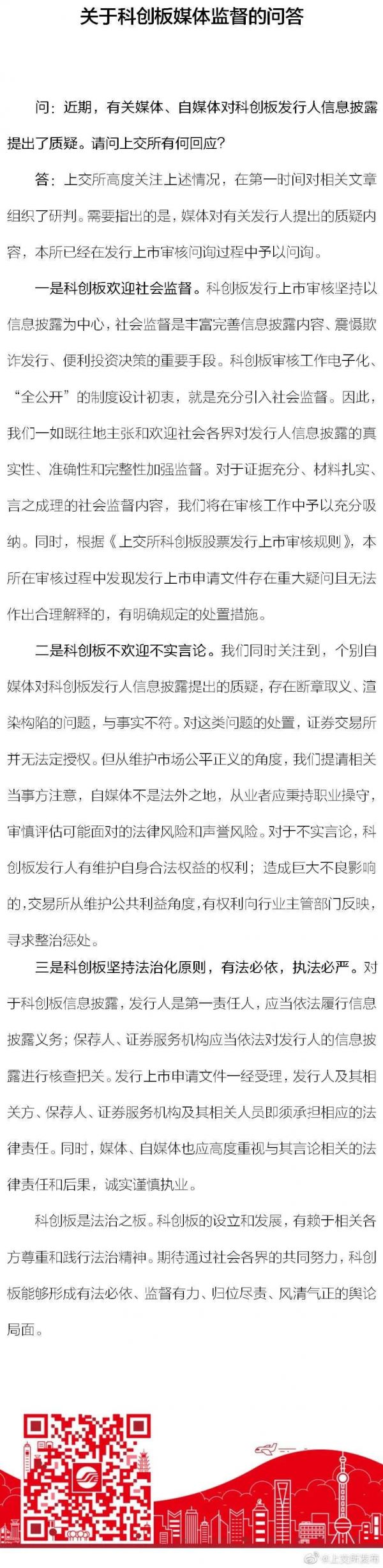 当然不是!尤其是在科创板,实际上,上交所甚至在科创板创立之初,专门公开表态:欢迎包括媒体在内的社会监督,更要求企业公开回应质疑。
