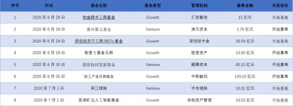 36氪经公开资料整理,本周共有8支基金开始募资,计划募集资金规模超过213.5亿人民币,其中最大笔募资为深创投苏宁三期REITs基金,产品底层资产为总建筑面积超过60万平方米的物流仓储资产。