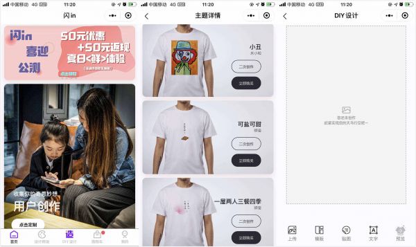 | 盈利模式上,线上制作的T恤价格在100元左右,线上用户的复购率有14-15%;“最小化工厂”则采用跟美术馆等场景分成的模式。梁凯表示,闪in没有库存、周转成本,且无需提前打版,其成本主要是产品本身的材料。