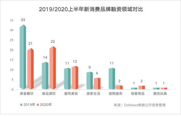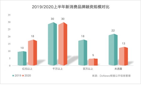我们试图寻找这些答案。「DoNews」对2020年上半年新消费品牌投融资事件进行了梳理,相较于2019上半年80起融资事件,2020年上半年共披露66起,有近18%降幅。