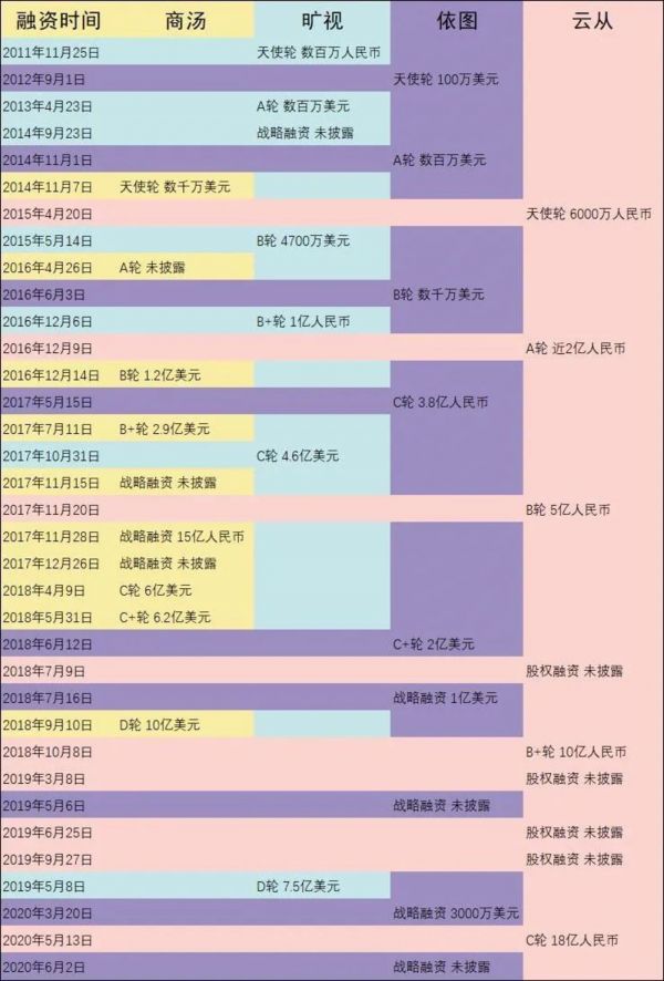 “四小龙”其余的三家中,融资最多的商汤,目前表示并不存在IPO的时间表和地点,但业界一直有有认为其估值过高的声音,在被列入清单后,对其质疑还会更多。