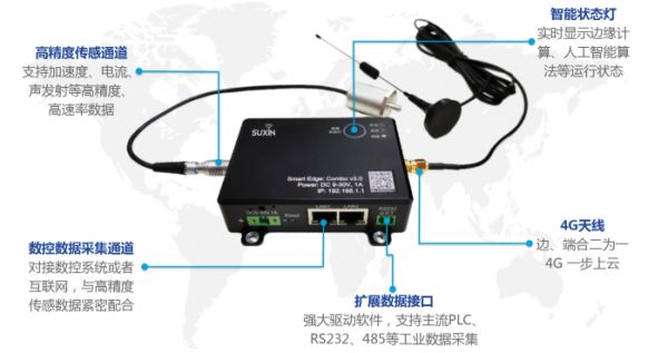 该设备第三个特点是,与国外厂商提供的有线台式数据采集处理设备通常只能在本地对数据进行中心化计算处理不同,苏芯物联基于ARM架构的边缘端微处理器开发集成了嵌入式边缘计算框架及算法,可以实现设备关键特征数据上云,通过边云协同实现计算资源的合理分配和利用。边缘端可以进行30%-40%的计算处理,对采集的大量工业数据进行预处理,降低数据上传和后端处理的时间和计算需求,后期60%-70%的计算处理则在云端进行,包括通过统计监测和机器学习算法进行故障诊断和能耗分析。并且这种引入边缘计算的私有云部署方式可以满足工业企业生产数据安全(数据不出厂)、低时延高可靠的数据要求。