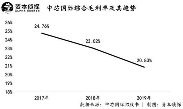 招股书显示,2017-2019年,中芯国际的综合毛利率均在25%以下,分别为24.76%、23.02%、20.83%。而同期同行业的半导体公司台积电、联华电子、华虹半导体的综合毛利率平均值分别为28.99%、28.9%、26.43%,行业公司的综合毛利率均高于中芯国际。