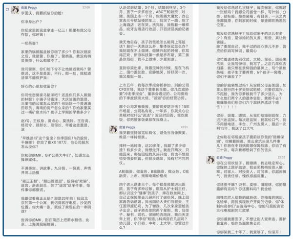 两天后,俞渝连发三条朋友圈,指责李国庆的五个点:第一,有梅毒;第二是同性恋,对象姓马;第三,用俞渝携程账号开房,出轨对象不知道是不是其同性恋恋人;第四,带走他们家1.3亿现金,其中还有俞渝父母的钱,至今未还;第五,经常在家里砸锅碗瓢盆。