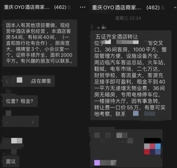 许多商家已经在“维权”群中低价转卖门店,甚至是枕头、被子、床单这些酒店基础设施,尽可能地追回一定损失。