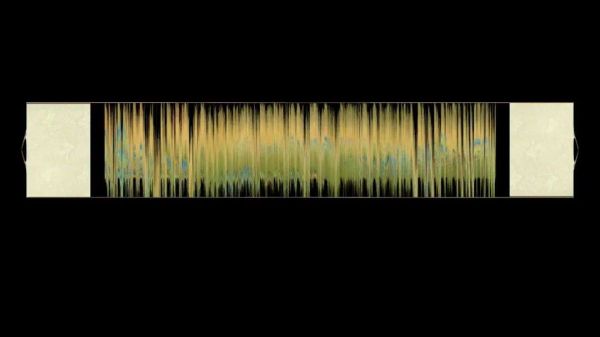 艺术家曹雨西将北京雾霾的历史数据,与北宋王希孟《千里江山图》中画面内容的像素阵列形成的纵轴坐标进行打碎和重组,从而生成新的“千里江山图”。