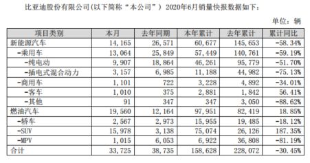 比亚迪上半年整体恢复速度较慢,不及同行。6月份销售新车3.4万辆,同比下滑12.9%,已连续6个月同比下滑,近3个月销量的环比增速也都不足10%。6月比亚迪新能源汽车战败,销量约1.4万辆,同比下滑46.7%,而燃油车销售近2万辆,同比上涨60.8%。上半年比亚迪累计销售16万台,同比下滑30.45%。