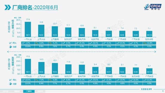 进入6月乘用车销量TOP10的长安汽车(18.73%)、上汽集团(13.42%)、东风汽车(9.93%)和广汽集团(7.33%)7月至今股价都有不同幅度的连续爬升。
