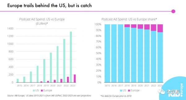 欧美播客广告市场对比,图片来源:iabeurope