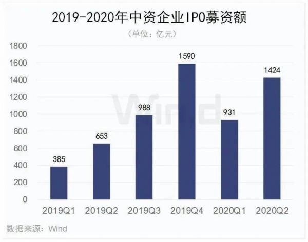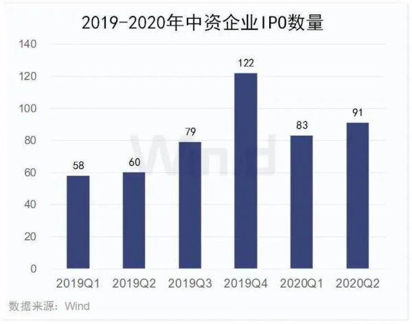 根据Wind数据,2020年上半年,中资企业IPO上市174起,其中一季度83起,二季度91起。而在去年同期,这两个数字分别是58起和60起。