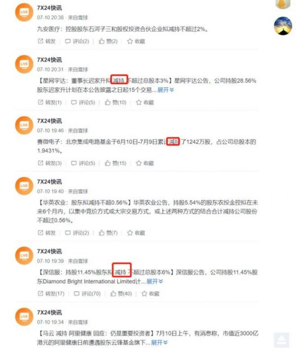 昨晚更是牛逼了,看快讯,满屏尽是减持公告。