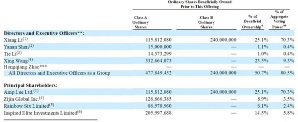 至此,美团系在理想上已持续投入了8亿美元,持股比例超过20%——最新招股书显示,王兴旗下的Inspired Elite Investments Limited和Zijin Global Inc.分别持有205,997,688股和126,666,385股A类普通股,为理想汽车第二和第三大股东,其持股占总股本比例分别为14.5%和8.9%,投票权分别为5.8%和3.5%。