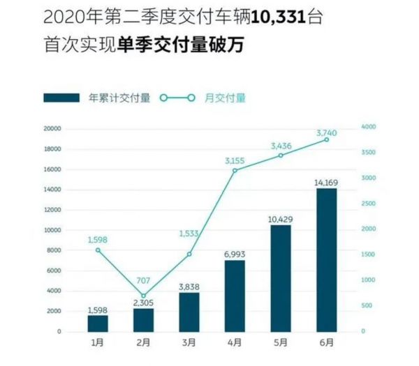 数据显示,蔚来在5月交付新车3436辆,创月度交付纪录。2020年前两季度,蔚来累计完成累计交付1.42万辆。小鹏则刚刚开始大批量交付的小鹏P7,预售订单也已破万。