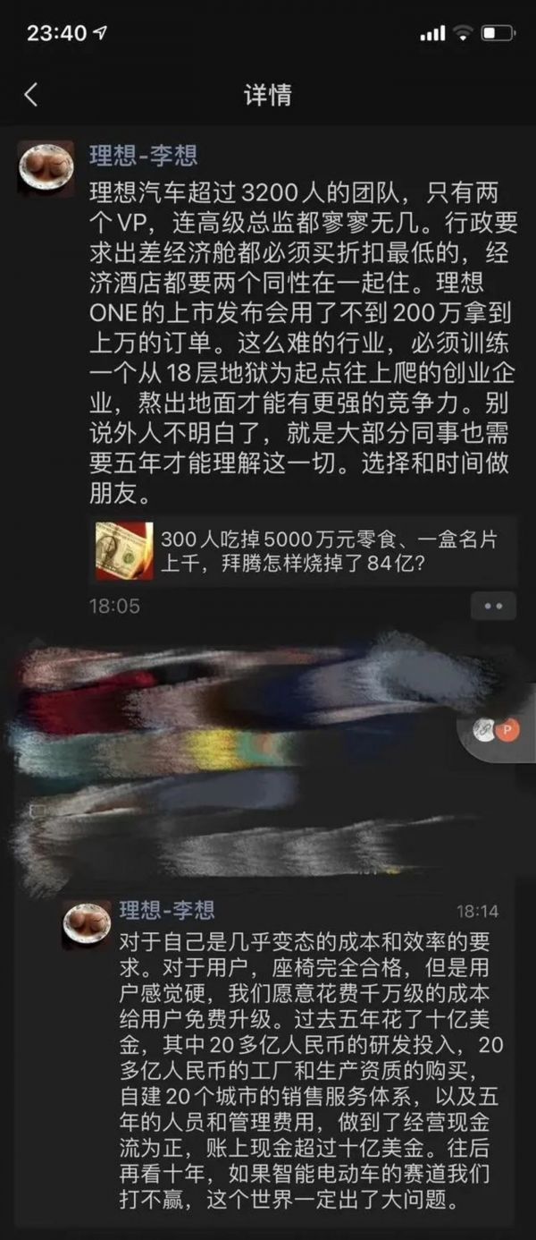 早期融资能力不足,让李想在内部推行了严苛的成本控制方式。多位理想员工此前就表示,公司已3年没有涨薪。