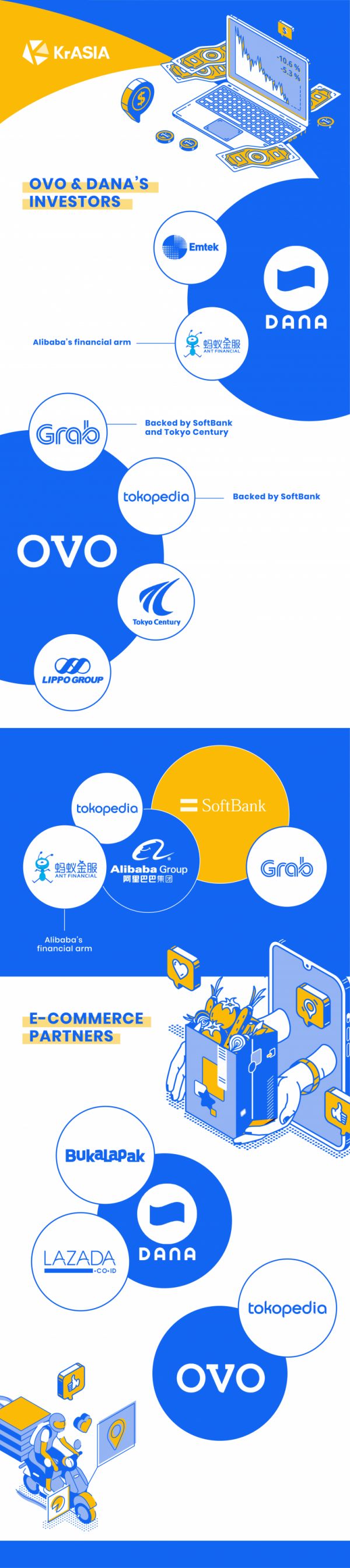 与 OVO 合作也解决了另一个平台的燃眉之急。2017年,印尼最大的电商平台 Tokopedia 旗下的电子钱包 TokoCash 遭到了印度尼西亚银行禁用。Tokopedia 迫于无奈,只得寻找外部支付服务商合作。据报道,2019年3月,OVO 获得了 Tokopedia 的投资;几个月后,这两家公司宣布建立合作伙伴关系。
