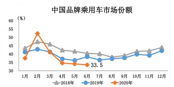 乘联会数据显示,今年上半年,自主品牌乘用车市场份额则进一步下降至36.3%。