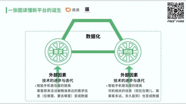 相较于大众点评苦等数年才等到了需求的数据化,Uber 和滴滴的出现,则说明当供需两端同时实现数据化程度的质变,是新平台迅速崛起的绝佳契机。