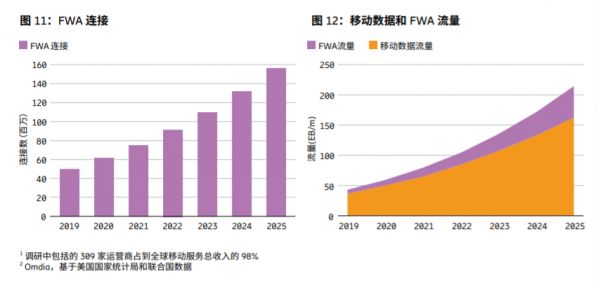 据了解,截至2019年年底,全球固定无线接入(FWA)数据流量约占全球数据总流量的15%。而到2025年,数据流量预计将增长近8倍,达到53艾字节,占全球移动网络数据总流量的25%。到2025年年底,FWA连接量预计将达到近1.6亿,占全球移动网络数据流量的25%。消费者和企业对数字服务的需求以及政府资助项目和相关补贴都在推动FWA市场的发展。