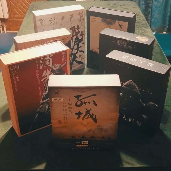 另一种,就是没有实景,大家围坐在一起,也不换服装,就是纯聊,纯BB。线索、道具都是卡牌,人物的代入,故事的还原,纯靠读文字,纯靠个人演绎。这种呢,叫“盒装本”。