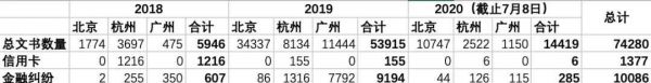 而前面两年,互联网法院经手的金融案件还比较多,到了2020年,总共可查询的文书,不到300件。