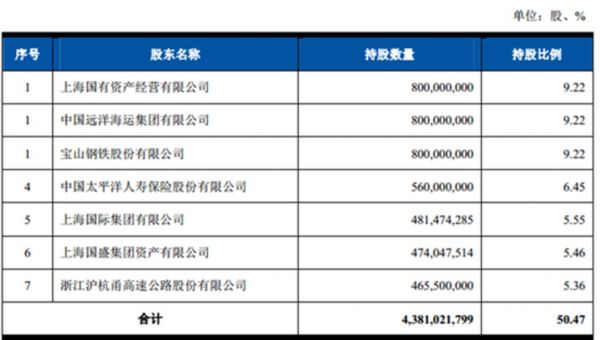 在最新的招股说明书中,上海农商行披露了持股超过5%的股东名单。