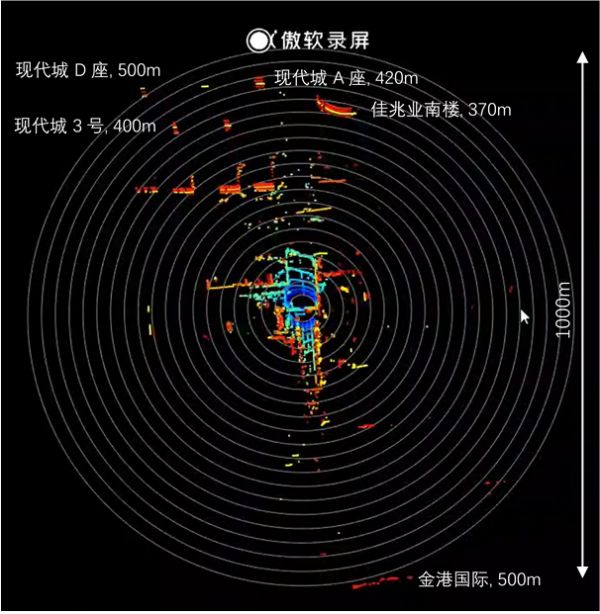 图1:“SF-16-400测量的横跨直径1000米的三维实时点云” 来源:产品实测截图