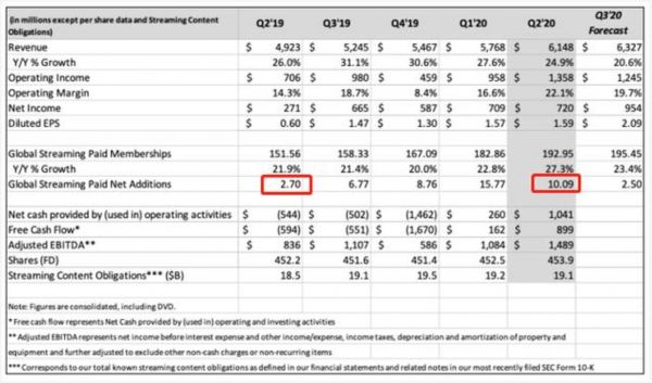 在付费用户数据上,这也是奈飞新增付费会员数量连续两个季度突破千万大关,继第一季度新增1600万付费会员后,二季度公司再次新增会员1010万,较去年同期的270万大增2.74倍,亦高于市场预期的新增750万。